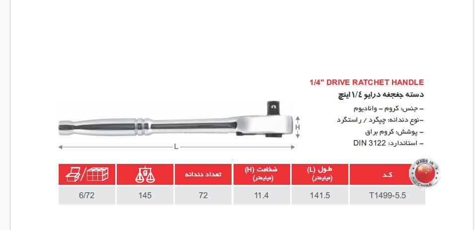 دسته بکس جغجغه 1/4 اینچ توسن مدل T1499-5.5