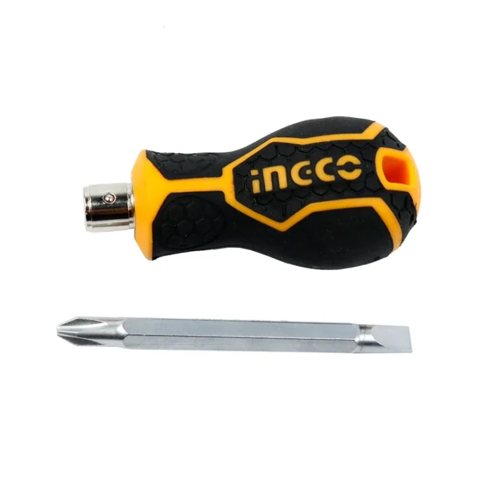 پیچ گوشتی مشتی سر تعویض شو اینکو مدل مدل AKISD0202، دارای 2 کاربری است.این مجموعه شامل یک دسته پیچ گوشتی مشتی به همراه یک عدد سری پیچ گوشتی یکسر دوسو یکسر چهارسو است که از جنس آلیاژ فولاد کروم-وانادیوم ساخته شده است و دارای روکش ضد زنگ، ضد فرسایش است.سایز سری دوسو این مجموعه SL6 و سایز پیچ گوشتی چهارسو PH2 است و طول کلی این سری پیچ گوشتی برابر با 75 میلیمتر و عرض آن 6.35 میلیمتر است. این دسته پیچ گوشتی به صورت شش گوش با درایو 1/4 اینچ با طول 7 سانتیمتری و عرض 3 سانتیمتر است که به خاطر داشتن پوشش دستگیرهی پلاستیکی نرم TPR آجدار، در دست بسیار خوب قرار میگیرد و علاوه بر آن، دارای خاصیت ضد لغزش و ضد تعریق است. وزن این مجموعهی باکیفیت و بادوام، برابر با 55 گرم است و در کاربریهای عمومی و تخصصی و در محیط های صنعتی، کارگاهی و خانگی به کار شما خواهد آمد.